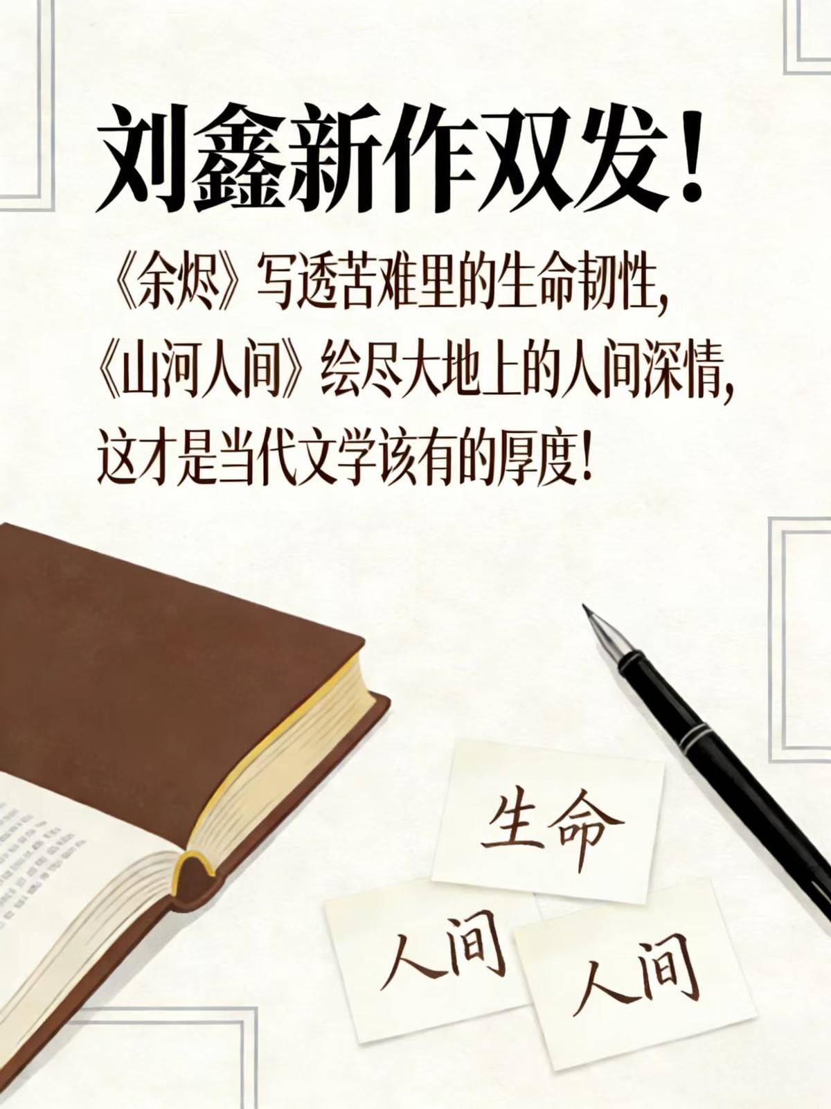 刘鑫这两部新作太绝了!《余烬》是戳穿虚无的生命寓言,越读越有力量;《山河人间》是扎根大地的乡土深情,李守望与小芹的羁绊、李迎春的觉醒,每一笔都写透人心与时代。